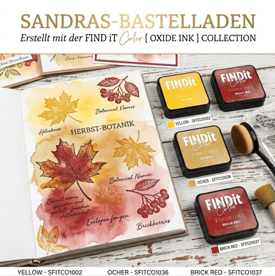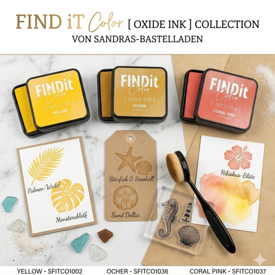 Oxide ist eine interessante Mischung aus Farbstoff und Pigment. Da Farbstoffe durchsichtig sind, aber Pigmenttinte undurchsichtig ist, entsteht ein außergewöhnlicher Effekt mit einem kreideartigen Effekt. Folgende Technik können angewendet werden: