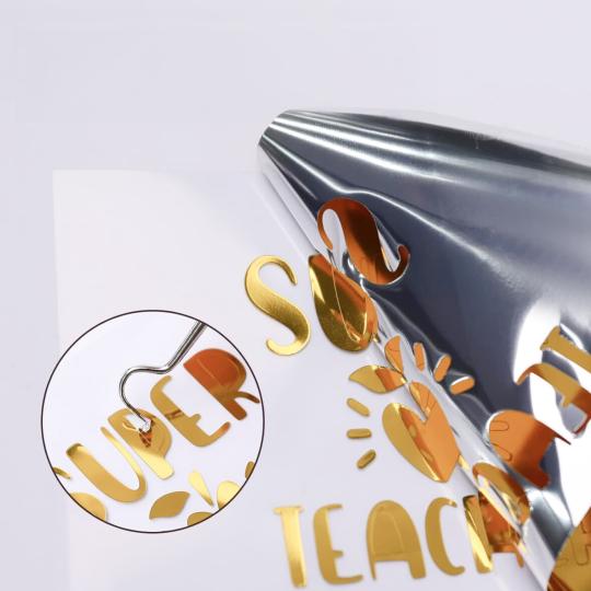 Die goldglänzende, permanent klebende Vinylfolie ist ideal für die Gestaltung langlebiger Designs auf harten Oberflächen wie Glas, Keramik, Plastik und mehr. Es lässt sich leicht mit deinem LOKLiK iCraft™, Crafter, Cricut oder Silhouette Plotter oder sogar von Hand schneiden. Der starke Kleber auf der Rückseite hält den Bedingungen im Freien und dem Waschen stand und eignet sich daher perfekt für Aufkleber, Schilder und personalisierte Gegenstände. Die durchsichtige PET-Rückseite ermöglicht ein einfaches Schneiden und verhindert das Reißen und Blasen.