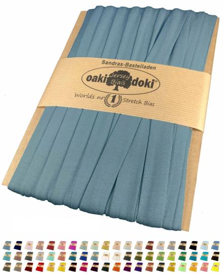 Oaki Doki Schrägband / Einfassband Tricot de Luxe Jersey gefalzt 25m x 20mm 003-Eisblau 003-Eisblau