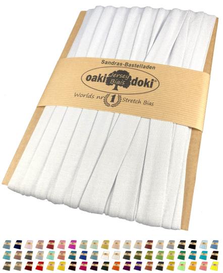 Das Oaki Doki Tricot de Luxe Jersey-Schrägband eignet sich zum Einfassen und Verzieren von Kleidungsstücken, die aus Jerseystoff gefertigt sind. Mit dem elastischen Schrägband wird das i-Tüpfelchen auf die eigene Kreation gesetzt.