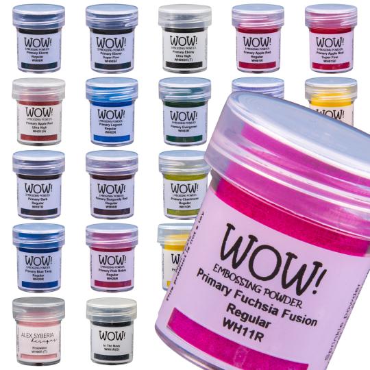 WOW! Die Primärfarben sind eine Reihe von Grundfarben, die Bastlern einen guten Einstieg ins Embossing bieten. Die Pulver lassen sich geschmeidig verarbeiten und sind hochglänzend.