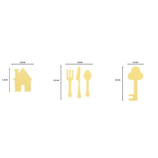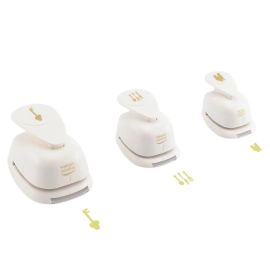 Mit diesem Motivstanzer Set von Vaessen Creative stanzen* Sie mit nur einer Handbewegung ein Haus (13 x 16 mm), Besteck (20 x 25 mm) und ein Schlüssel (30 x 36 mm) aus Papier, Tonkarton, Fotos, Kork, dünnen Schaumstoff und mehr. Motivstanzer sind die perfekten Helfer zum Verzieren von Karten, Scrapbook Seiten, Planern, Etiketten und Einladungen.